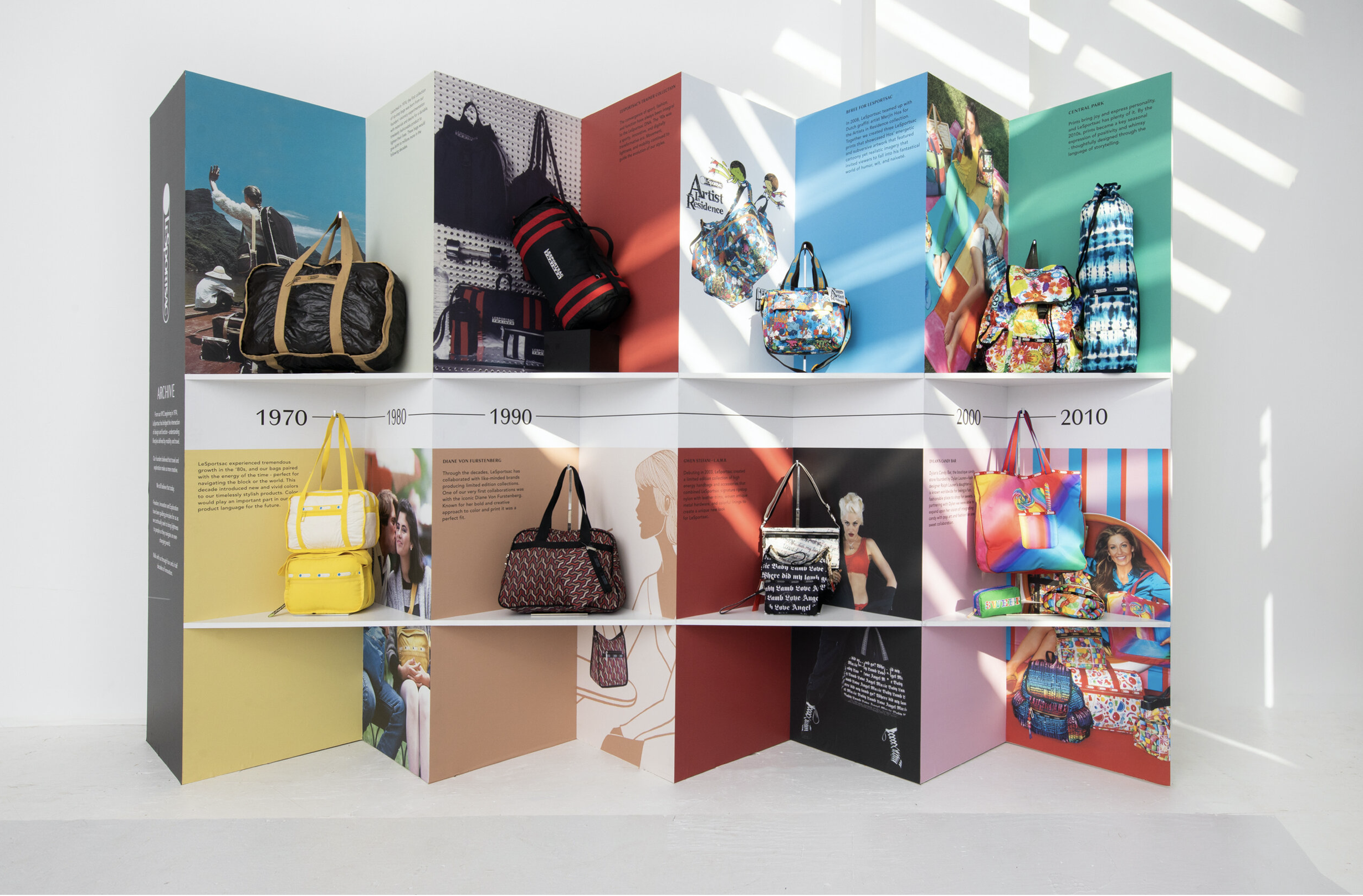 We continue (and love!) to work with LeSportsac. We have since been hired to take on a complete redesign of the brand’s global retail directive comprising materials, fixture design, customer flow, and product zoning for flagships and shop-in-shops, outlets, and pop-ups, as well as their internal showrooms and tradeshows. Most recently we’ve been providing visual direction and content for seasonal showroom and window displays.